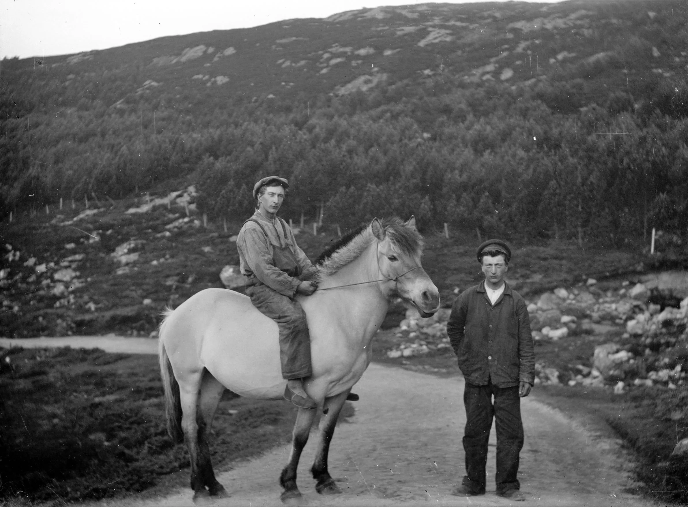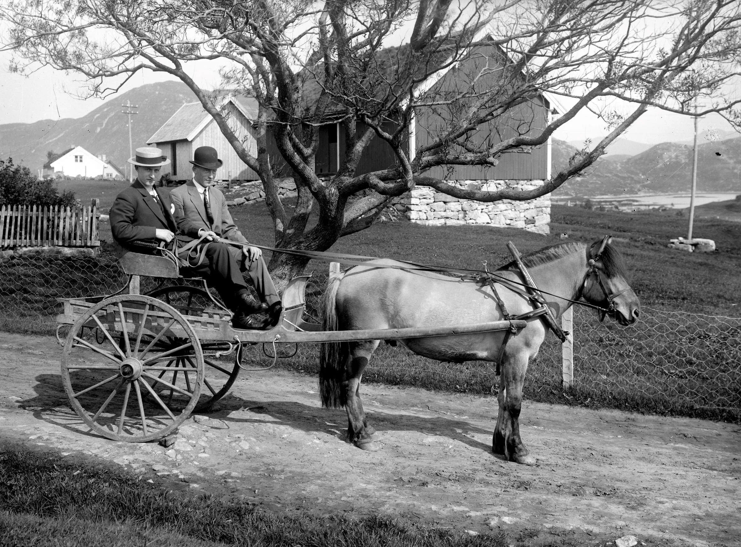 To ukjente karar med hest, ca. 1910. Dei ser ut som brør, eller kanskje også tvillingar.
