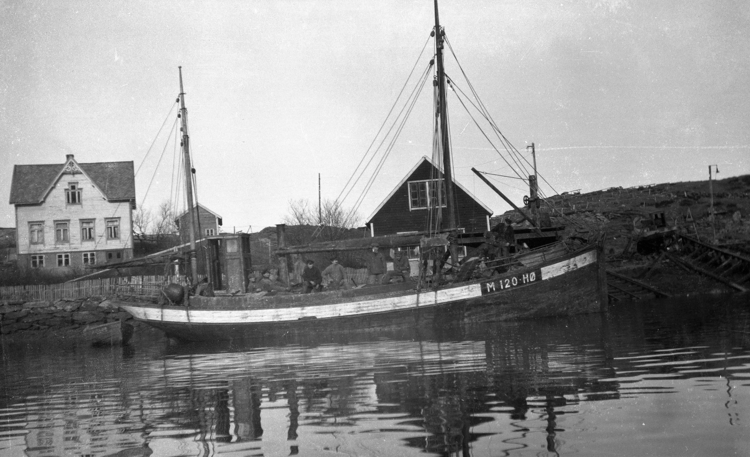 Båten ligg ankra opp heime ved Nerlandsøya i august 1941.