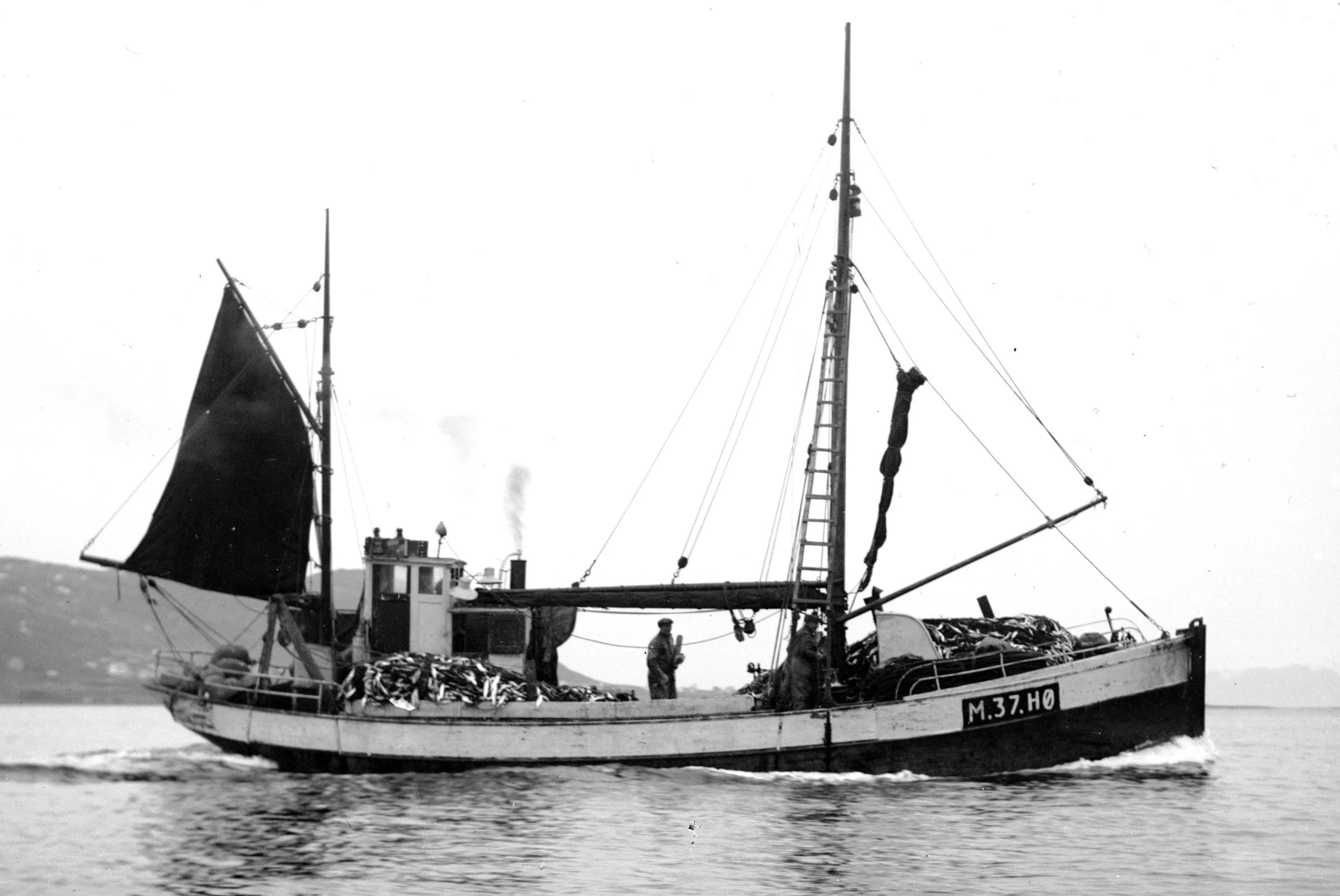 Trygg på veg for å levere fiskelasten. Bilete er frå februar 1936.