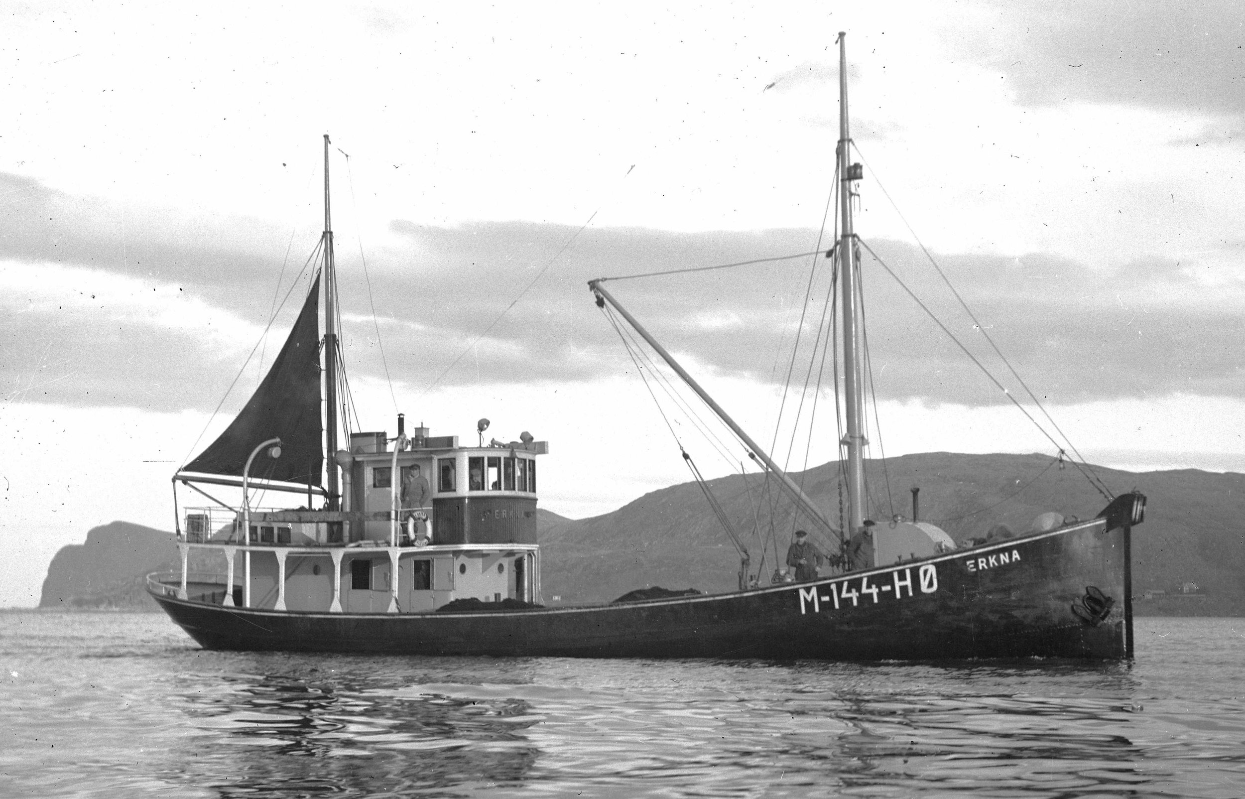 M 144 HØ, “Erkna”, på Holmefjorden med Rundebranden i bakgrunnen. Bilete truleg frå 1939.